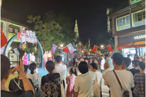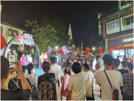 《月光下的中国》是一首赞美祖国的诗歌,展现了月光下一个宁静、温柔、祥和、美丽的中国,表达了作者深深的爱国赤子之情。在夏季的夜晚,来自不同岗位的共产党员,因热爱阅读、热爱朗诵而聚在一起,把无声的文字化作有声的倾诉。他们以朗诵为载体,来歌颂中国共产党、歌颂祖国、歌颂社会主义及我们国家在中国共产党领导下取得的辉煌成就。展现新时代儿女永远跟党走、投身祖国建设和民族复兴的良好精神风貌。活动吸引了众多游客的驻足观看,并获得了阵阵掌声。