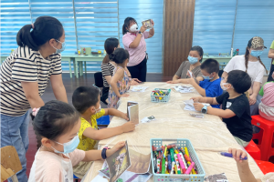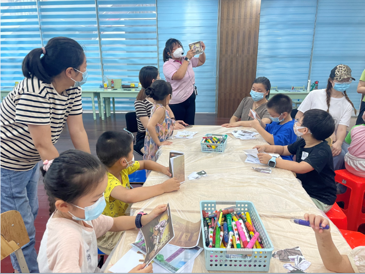 首先是音乐互动环节,以古诗《精卫》开始,目的是让小朋友们尽快进入绘本讲读的情景中。接着老师开始绘本故事分享,《顾炎武不可一日无书》。该绘本讲述了昆山“三贤”之一顾炎武酷爱读书的历史故事。接着让小朋友了解顾炎武的生平事迹,把孩子们渐渐带入阅读的世界。手工环节是亲手制作一本属于自己的《顾炎武不可一日无书》的手工书,让孩子们在制作过程中不仅能回顾故事内容,深刻感受他的勤勉好学,还能体会到制作书籍所带来的成就感和快乐。让孩子们在制作过程中感受家乡文化特色和魅力。