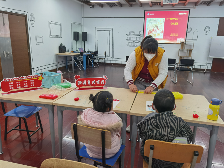首先是音乐互动环节——童谣《二十四节气》,目的是让小朋友们尽快进入绘本讲读的情景中。接着老师开始故事分享,绘本讲述了冬至是二十四节气的第二十二个节气,也是北半球全年中白天最短、夜晚最长的一天。手工环节是亲手绘制一幅属于自己的冬至作品,用超级黏土来制作一碗热气腾腾的饺子。同时也让小朋友把对冬天的爱、对冬色之美的渴望融入自己的作品中。