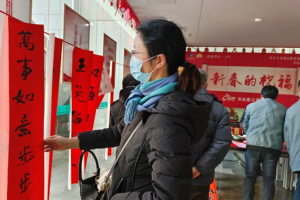 书法家义务写春联活动是昆山市图书馆的品牌活动,深受读者欢迎,活动还未开始时,已经有许多读者在排队等候,刘女士每年都参加书法家免费写春联活动,她说活动邀请的书法家都是昆山的大咖,手写的春联既能欣赏书法的魅力,又能收获满满的新春祝福,拿到春联,感觉春节就近了。写春联、剪窗花,带我们体会到中华优秀传统文化之美,是一项十分有意义的活动。