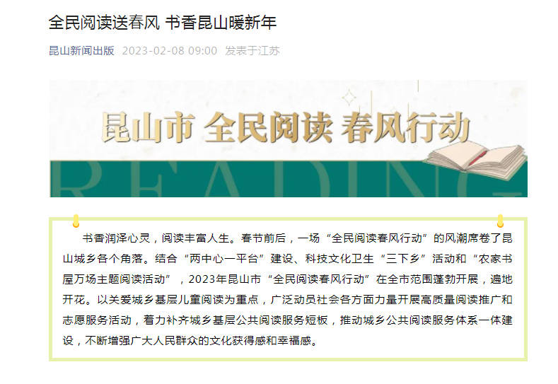 引力播:全省仅7席,昆山入选全国基层公共阅读服务推广项目