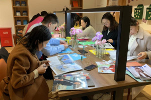 与此同时,我们邀请到馆读者参与了“邮寄读书日定制明信片”、“创作我的拼贴诗”、“阅读第111页”等读者活动。大家纷纷在读书日的定制明信片上写上关于读书的想法,邮寄给亲朋好友。一位老先生认认真真地写下对远在外地的儿孙的思念,并嘱咐他们要“读万卷书、行万里路”。而拼贴诗活动将本次活动推向高潮,每位读者都打开脑洞,一边构思一边创作,创意与灵感迸发,各自都展示出了优秀的作品,大家互相交流、评点、分享,活动现场氛围十分热烈。