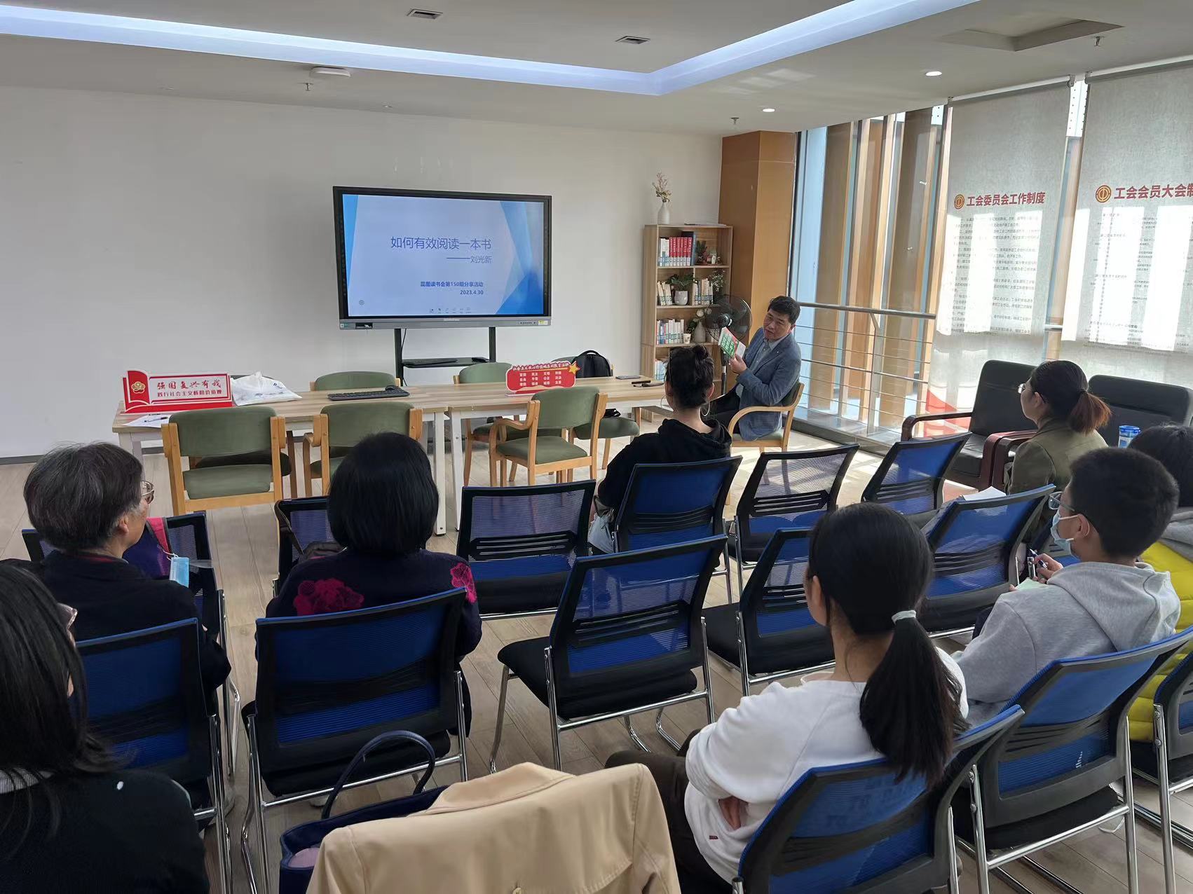 4月30日下午2点,昆图读书会第150期在我馆五楼活动室举办,分享主题是《如何有效阅读一本书》,分享嘉宾是资深会员刘光新老师,共有15名书友参加了此次活动。