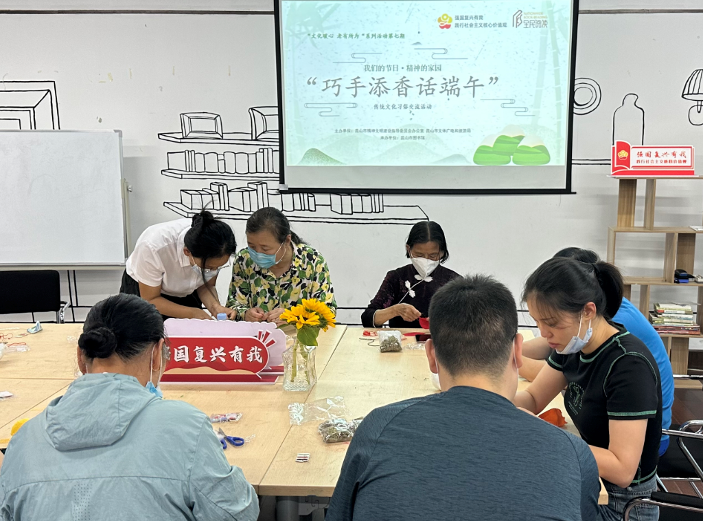 6月21日上午9:30,“文化暖心,老有所为”系列活动第7期:“巧手添香话端午”——传统文化习俗交流活动,在我馆一楼读书乐基地举办,共有8位老年读者参加了此次活动。