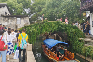 “黑瓦白山墙,流水绕人家,杨柳垂荫,鹅鸭相逐,处处入画。”周庄,以其灵秀的水乡风貌,独特的人文景观,质朴的民俗风情,成为江南水乡的杰出典范,被称为“中国第一水乡”。昆山市图书馆带领五十多名读者实地探访周庄,在老师的讲解下,读者们边游边学,了解周庄古镇的历史、名人、地标、民俗等多个方面,沉浸式体验周庄的人文风貌,品味“人文江南”。