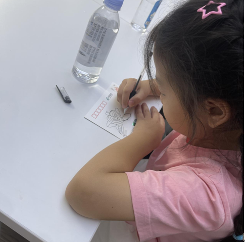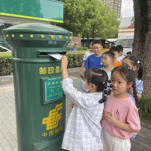 绘本故事后,我们带领小朋友们通过写明信片的形式,给远方的家人、朋友,或是想念的人,写上一段话,亲自去邮政厅外的邮筒投递,寄出自己的祝福。