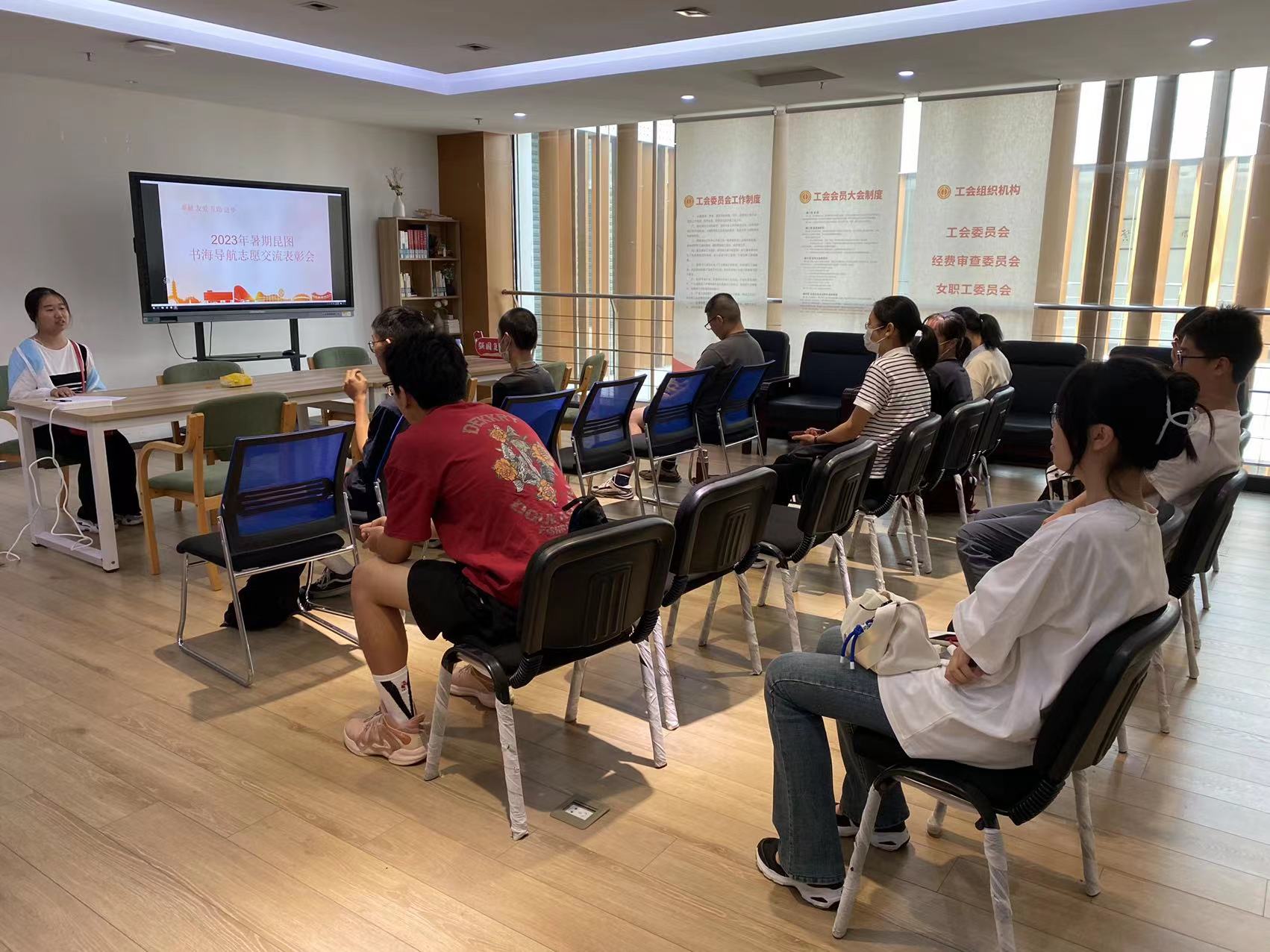 8月24日上午9点30分,我馆在五楼活动室举办了2023年暑期书海导航志愿者交流表彰大会,共有11名志愿者参加了此次活动。
