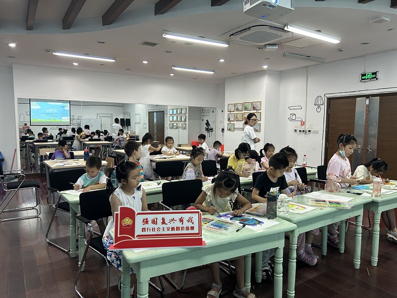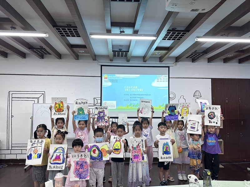 2023年8月27日14:00,小书虫俱乐部在昆山市图书馆一楼大厅读书乐基地,举办了一场精彩的小书虫艺术课《背着书包上学堂》。