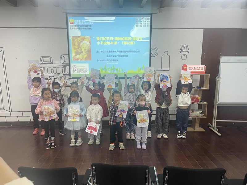 在重阳节来临之际,昆山市图书馆于2023年10月22日上午10点,举办了小书虫绘本课活动——《菊花蜜》。