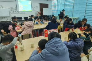 一首儿歌《新年到》带领小朋友们进入了绘本讲读的情景中,接着老师分享绘本故事《外婆和大公鸡》,这是一本以中国传统节日春节为背景的亲情故事。作者把中国人过春节时的许多节日风俗融合在故事里,把外婆对小悦的疼爱和亲情,把乡村生活、童年时光的怀念之情,推到了故事的前台,写出了在物质文明发达的今天,人们对曾经有过的田园生活和乡村文明的追忆与留恋。之后老师带领小读者们做了水底烟花观察实验,将色素、油、水混合在一起后会发生什么神奇现象呢?由于水油分离原理,原先包裹在油中的色素会慢慢的沉入水底,看起来好似美丽的烟花绽放。在手工环节,小朋友们用红色的卡纸和中国结来制作鞭炮,欢欢喜喜迎新年。