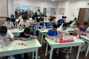 风力发电是一种重要的可再生能源,通过将风能转换为机械能,再进一步转换为电能。它是利用风力带动风车叶片旋转,再透过增速机将旋转的速度提升,来促使发电机发电。依据风车技术,大约是每秒三公尺的微风速度(微风的程度),便可以开始发电。在手工实验环节,小读者们尝试自制风力发电机模型。大家拆开材料包,跟着老师的讲解步骤开始搭建,将配件木板拆下来,接着将发电机装上,然后将叶片和小灯泡都安装好,转动风扇叶片模拟风力吹动,当叶片转动小灯泡也亮了起来,风力发电机完成。小读者兴高采烈的互相展示着作品,分享成功的喜悦。