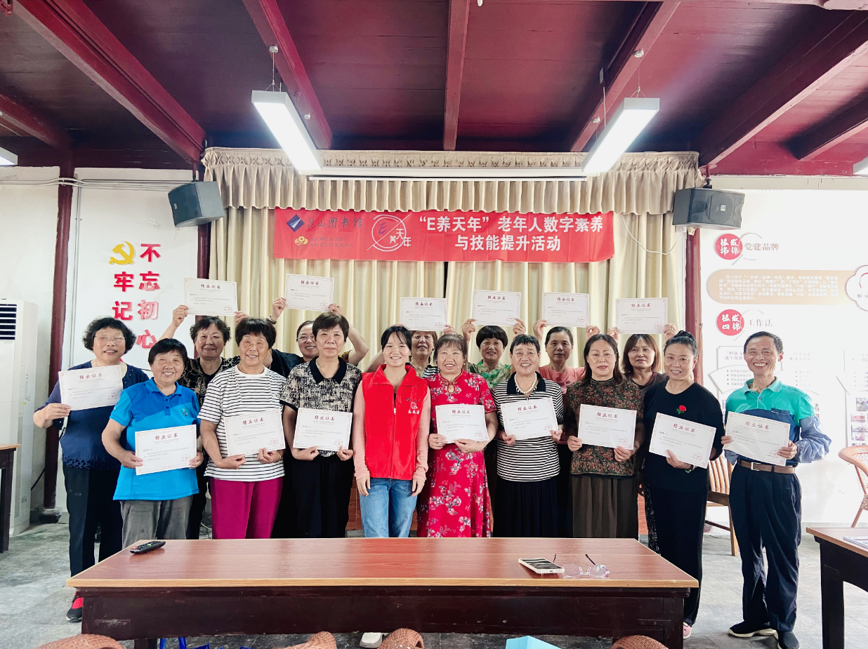 由昆山市图书馆主办,锦溪镇上下塘社区承办的“E养天年”老年人数字素养与技能提升活动于6月13日完美收官。