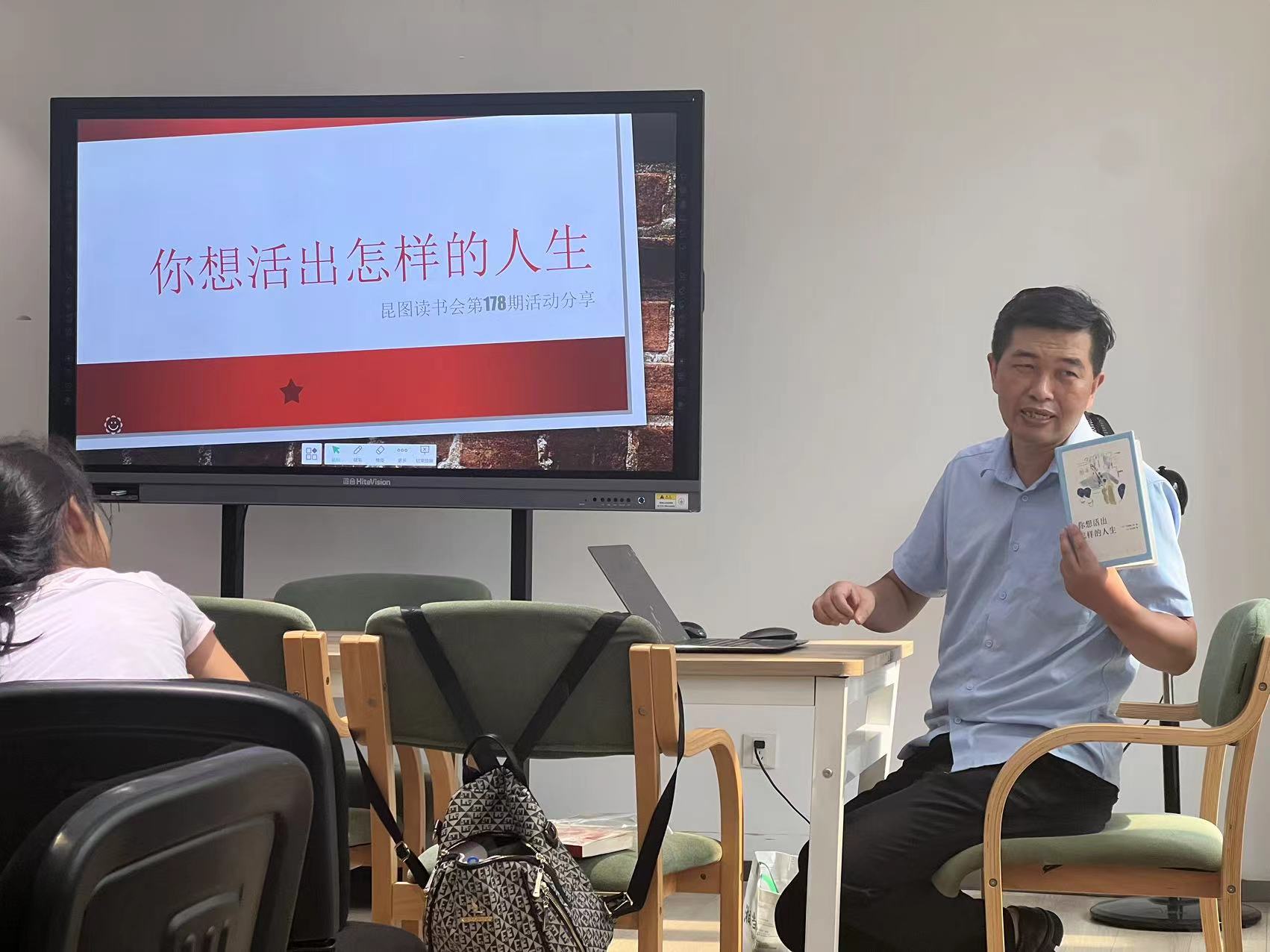 8月10日下午2点,昆图读书会第178期在我馆五楼活动室举办,分享主题是《你想活出怎样的人生》,分享嘉宾是刘光新老师,共有11名书友参加了此次活动。