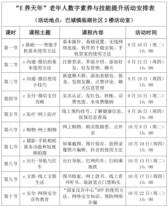 本次活动除了在本馆开展外,还联合开发区晨曦社区、开发区石桥社区、巴城镇临湖社区、周庄镇文体中心,将活动以“文化惠民活动进社区”的形式送进这几个基层点位,将培训对象聚焦到老年人更集中、学习需求更大的地方。活动配备专业的课程体系、优秀的讲师辅导团队,细致精美的培训讲义,现场活动包括课件讲授、指导操作、实践练习、答疑解惑四大环节,培训内容贴合老年人需求与特点,切实帮助老年学员有效掌握所学知识与技能,真正做到老有所学、学有所用,确保培训活动出成效。