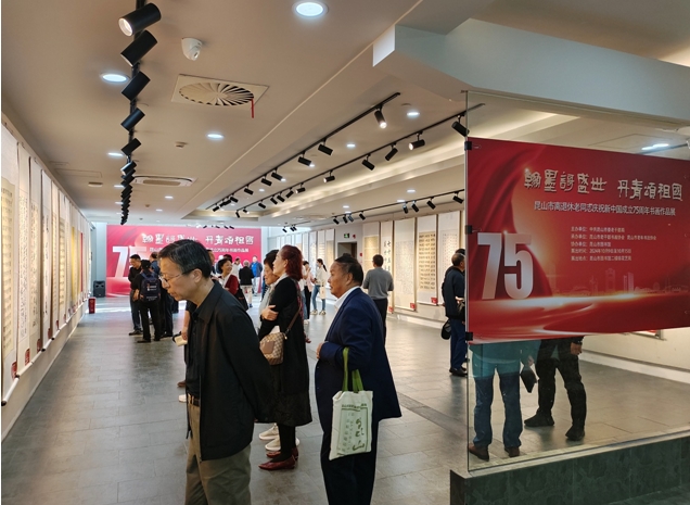 丹青吐彩,翰墨飘香。10月9日,由中共昆山市委老干部局主办,昆山市老干部书画协会、昆山市老年书法协会承办,昆山市图书馆协办的“翰墨歌盛世 丹青颂祖国”——昆山市离退休老同志庆祝新中国成立75周年主题书画作品展在昆山市图书馆二楼琼花艺苑展厅展出。