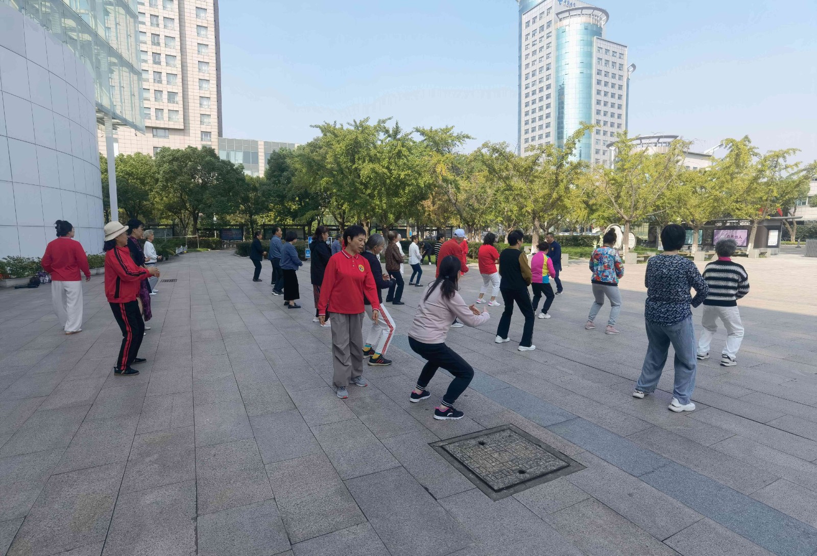 随后大家至北广场,由专业教练现场指导,分步骤教授八段锦的招式与动作要领。教练耐心细致地讲解每一个动作,确保每位参与者都能准确掌握。在教练的带领下,参与者们集体练习八段锦,互相纠正动作,分享练习心得,现场气氛热烈而和谐。