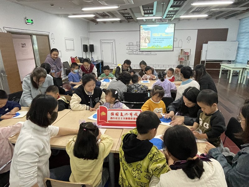 手工环节:用卡纸和超轻土制作我们共同生活的地球,孩子们在家人的陪伴下一边制作,一边回顾着故事内容。