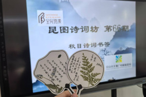 11月24日下午2点,昆图诗词坊第66期活动——秋日诗词书签,在我馆五楼活动室举办,共有11位诗友参加了此次活动。