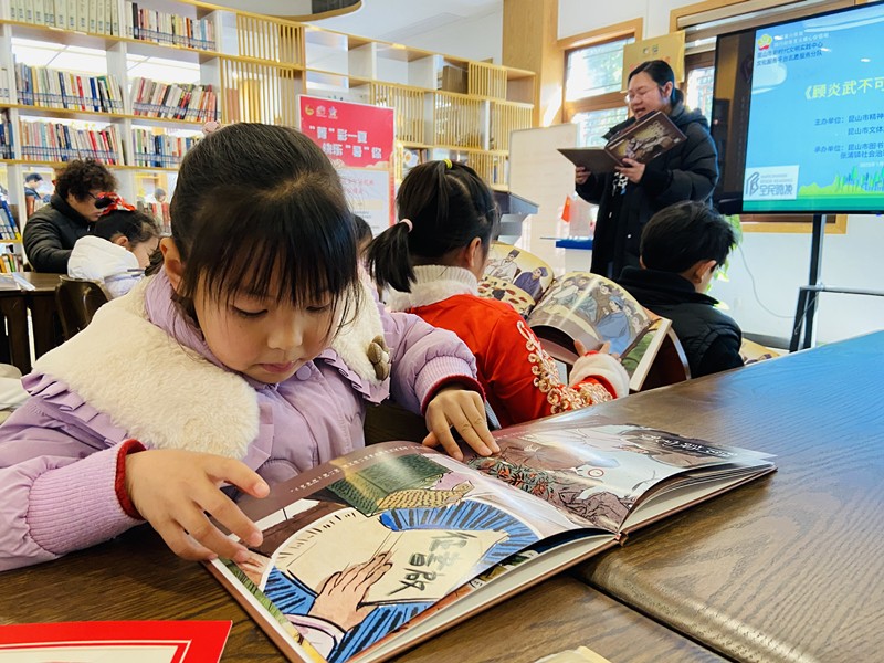 在农家书屋,昆山市图书馆的馆员带来了绘本课《顾炎武不可一日无书》。小朋友们在家长的陪同下一起了解了顾炎武先生如何读书的故事,让孩子们受益良多。亲子阅读丰富了村里小朋友们的精神生活。