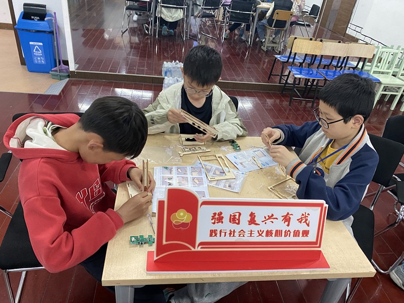 老师先科普了红绿灯的种类、功能和作用,让大家了解到红绿灯不仅仅是街头常见的交通标志,更是维护道路秩序、保障行人和车辆安全的重要设施。同时,老师讲解了基础的交通安全知识,通过生活中常见的交通场景,帮助孩子们理解遵守交通规则的重要性,还通过课件向大家介绍了红绿灯的工作原理及其在交通中的关键作用。手工实验环节,小读者们跟着老师的讲解步骤自制红绿灯模型,他们拆开材料包,一步步搭建,一边操作,一边思考着红绿灯的构造原理。