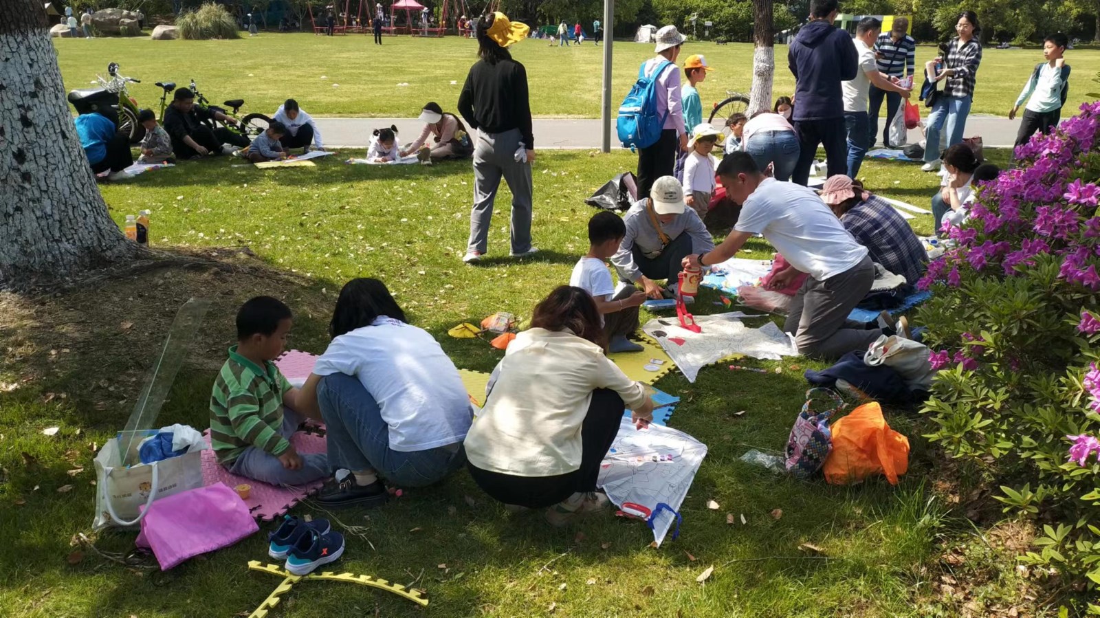 4月26日下午两点,自助图书馆森林公园分馆旁的草坪上洋溢着欢声笑语,"我和春天有个'阅'会"亲子绘本共读活动在此温馨举行。此次活动吸引了16组家庭共计40名读者热情参与,通过亲子共读与手工风筝制作的结合,让阅读与春天的美好邂逅在亲子互动中绽放光彩。