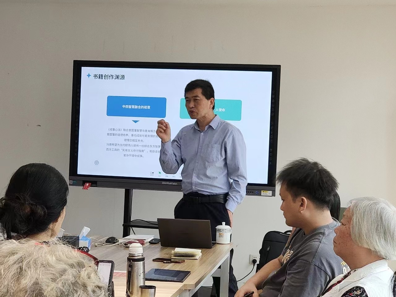 刘老师特地为本次读书会制作了赏心悦目的精美PPT,深入阐述了书中的内容,主要包含三个方面:第一个跟职场密切相关,是冯唐在麦肯锡和大型央企工作中的所学所用;第二个跟安身立命、为人处事有关,源于他以曾国藩为代表的东方智慧的理解;第三个是他多年来个人经验、修行的总结。这三层内容恰当得融合在一起,既有干货又不乏趣味。