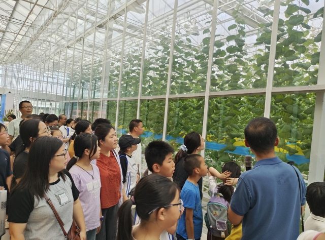 作为全国农业科技成果应用的先行示范区,陆家未来智慧田园被誉为展现未来农业的“最佳窗口”。在先进的A+温室工场内,孩子们被眼前的景象深深吸引:翠绿的蔬菜并非扎根泥土,而是整齐地排列在悬空栽培床上;沿着轨道滑行的机器人伸出机械臂,精准地为植物输送营养液……孩子们近距离感受了科技如何让蔬菜瓜果在“智慧工厂”里高效生长。