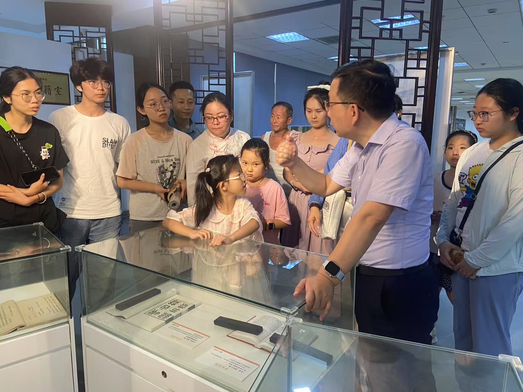 品读之后,诗友们移步至四楼参考阅览室连廊,参观了正在展出的“诗咏昆山——《昆山杂咏》与古籍里的昆山风物”微展览,泛黄的古籍书页为诗友们理解诗歌的历史地理背景与文化传承价值提供了更直观的窗口。