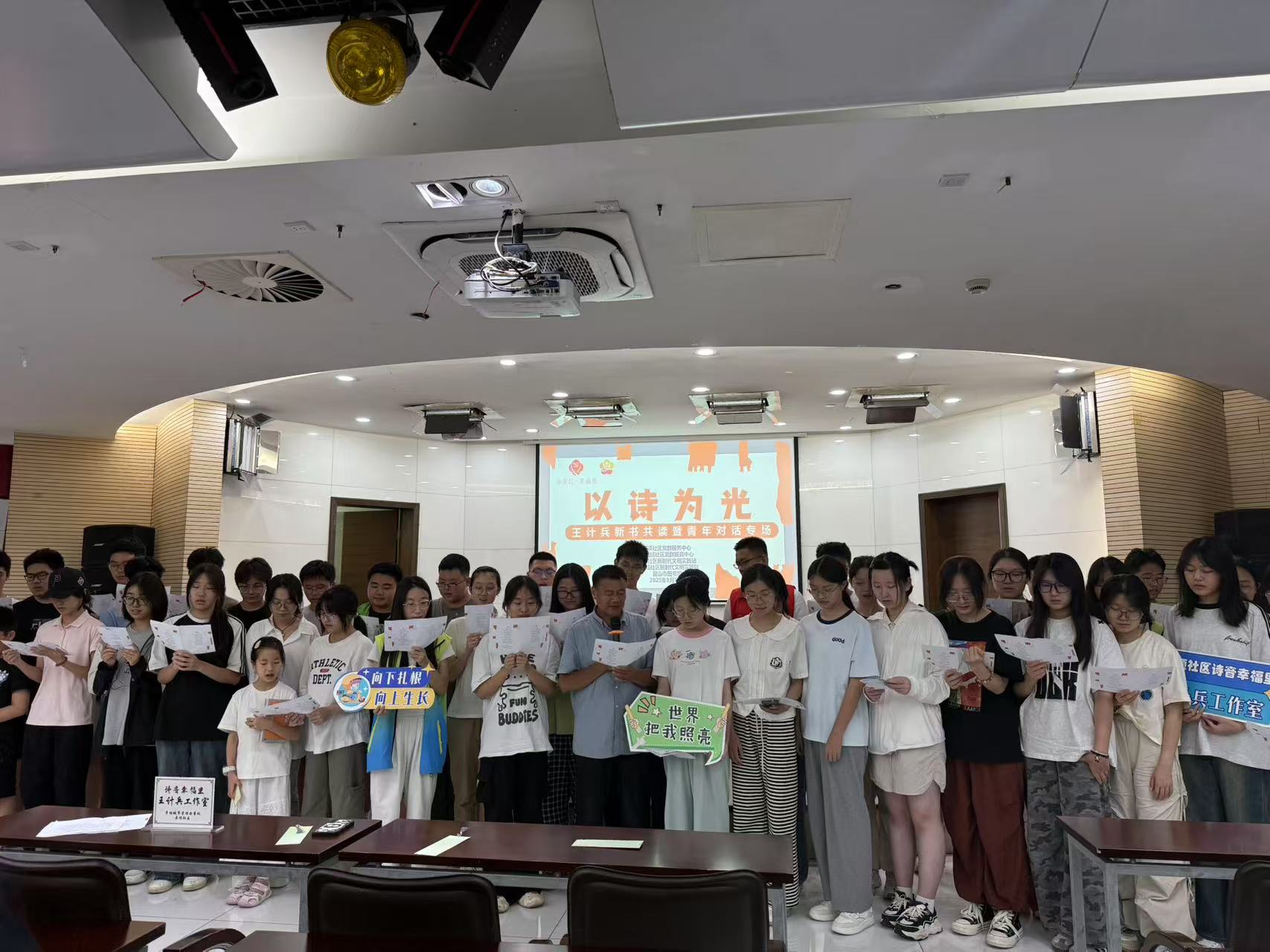随后是新书共读环节,青年代表上台领读王计兵新书中的精选诗作,琅琅书声传递着文字的力量。