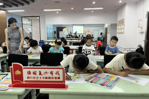 2025年8月24日14:00,小书虫俱乐部在昆山市图书馆一楼大厅读书乐基地,举办了一场精彩的小书虫艺术课《琼花如梦•吹墨花开》。