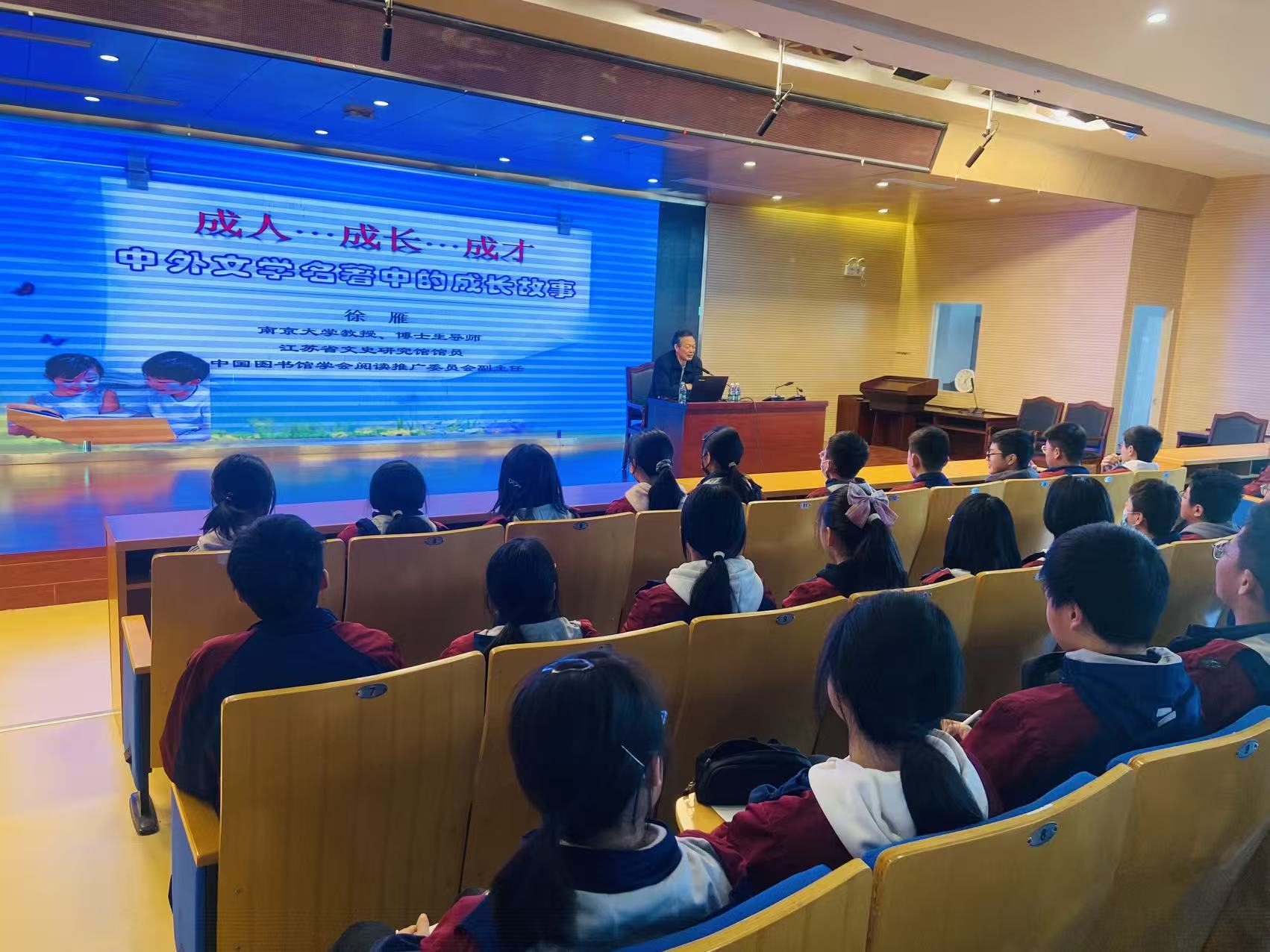12月9日, “成人·成长·成才——中外文学名著中的成长故事” 讲座在昆山汉浦中学举行,本次活动由昆山市图书馆主办,特邀南京大学徐雁教授主讲。