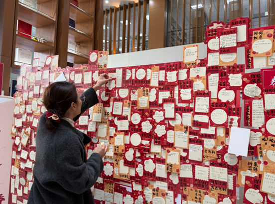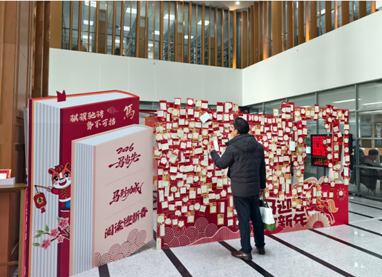 活动以马年文化为载体,设立“共书祝福·同贺新春”互动区,邀请读者写下新年心愿。读者们纷纷驻足,提笔凝思,留下对学业进步、身体健康、伟大祖国的美好寄语。“愿新年:路漫漫其修远兮,吾将上下而求索”“TO老己:进入重点班,学业顺利,福气平安,安安稳稳,家人平安,朋友开心。”“最后那个写1+1=3的小女孩还是选择了理科,未来的路很长,希望你保持热爱,保持专注。”一张张承载着温暖与希望的祝福卡片,很快挂满了展示区,形成了一道独特的、充满正能量的文化风景线,传递着读者们对幸福生活的向往与对美好未来的信心。