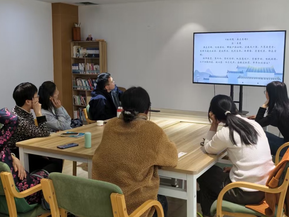 活动现场,馆员老师围绕历代描写扬州的经典诗词展开细致讲解,以李白千古名句“烟花三月下扬州”为切入点,结合扬州古称“广陵”的历史背景,梳理了不同朝代文人笔下的扬州人文风貌,带领在场读者读懂诗词文字背后的城市底蕴与文化内涵。讲解过程中,馆员逐一解读经典诗词内容,详细讲解各类诗词的创作背景、核心主旨,重点分享了杜牧、徐凝、姜夔等历代文人的扬州题材经典作品。现场读者全程认真聆听、静心学习,跟随着主讲人的思路,沉浸式感受古典诗词的独特魅力与扬州古城的深厚文脉。整场活动节奏舒缓、氛围轻松融洽,真正实现了以诗会友、互助学习的活动初衷。