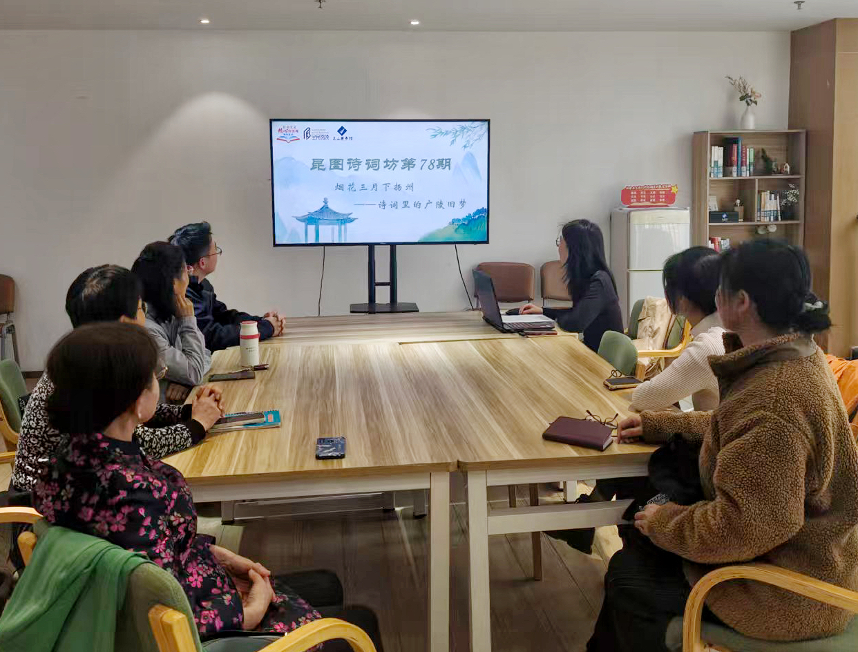 2026年3月28日下午,昆图诗词坊第78期活动在昆山市图书馆五楼交流室顺利开展。本次活动以“诗词里的广陵旧梦”为主题,由馆员史雨欣主讲,与6位读者在春日里探寻扬州历史人文底蕴,共赴一场跨越古今的广陵之约。
