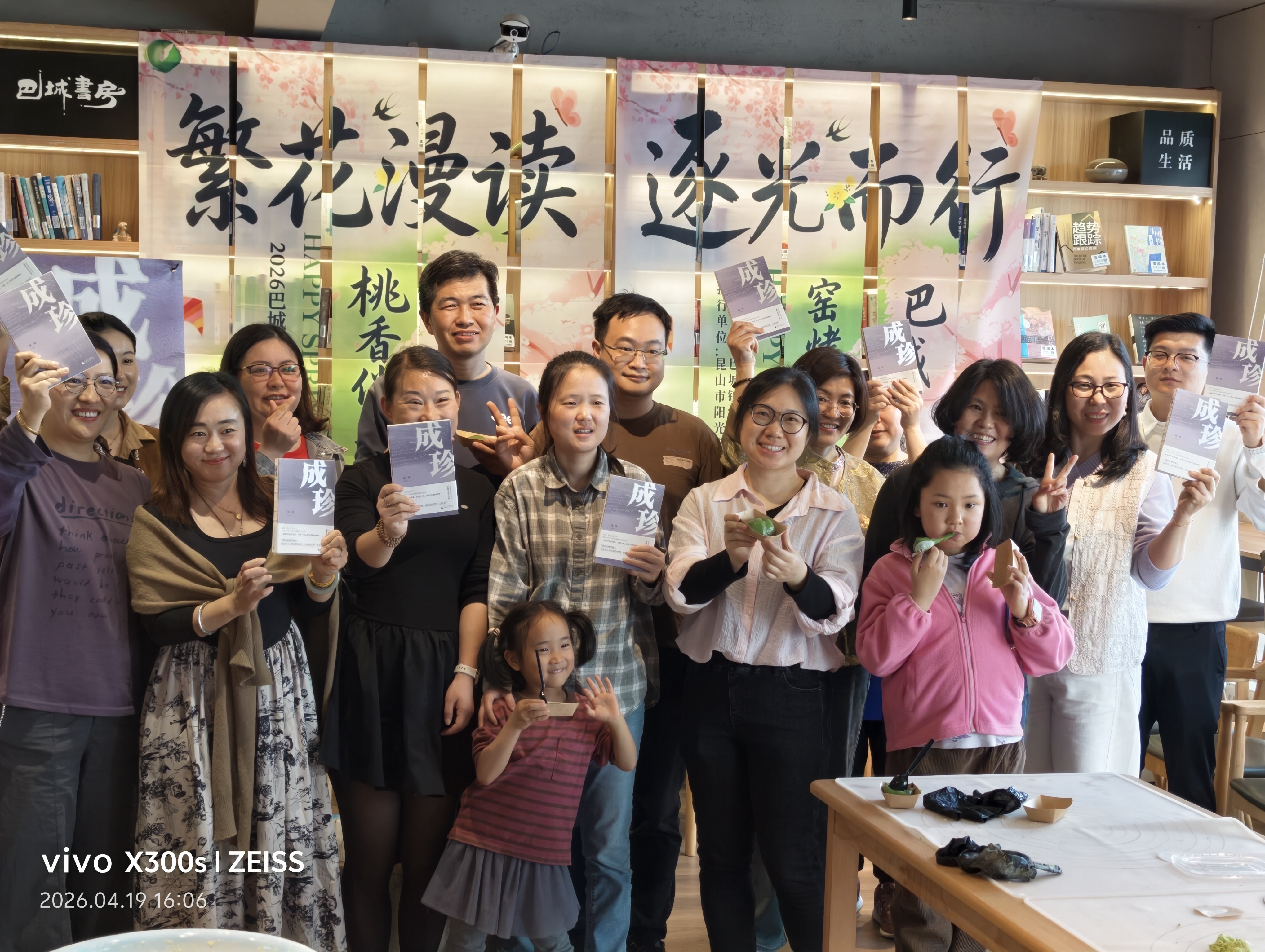 互动环节中,书友们踊跃发言。一位书友谈及被误诊经历,感慨“幸亏当时医生没有给我开刀”,正是书中“幸亏哲学”的现实写照。随后,图书馆向优秀分享者赠送了亲签版《成珍》。大家还一同动手制作青团,在蒸腾的香气与欢声笑语中,感受春日的融融暖意。