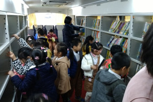 园方准备了精彩的节目,图书馆馆员为孩子们讲解了《巴解吃螃蟹的故事》,满载着图书馆精心挑选的四百余册绘本的流动图书馆也开进了活动现场,家长与小朋友一起登上流动图书馆翻阅图书、办理读者证、借阅书籍,享受了一场文化大餐。
