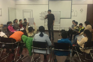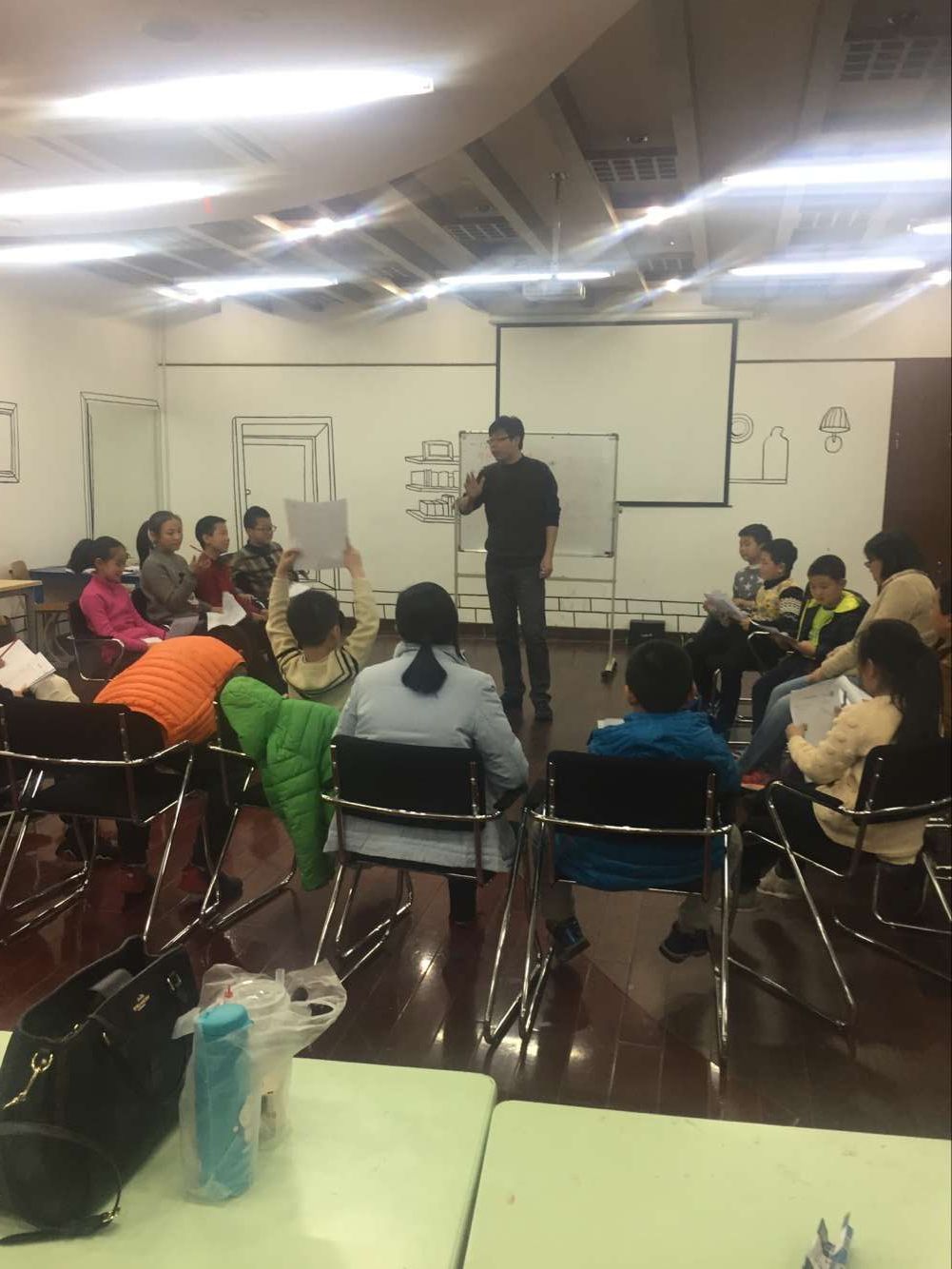 活动开始,陆老师先请大家用三句话进行自我介绍:“我叫什么”、“我来自哪个学校”、“现在的心情如何”。有些小朋友表示自己现在很开心,也有些觉得自己有点紧张,通过这样的自我介绍方式,可以拉近原本陌生的大家之间的距离。接着陆老师带着大家玩了几个小游戏,有拉着手一起转圈圈、“小鸡变凤凰”等等,读书乐活动基地里充满了欢声笑语。
