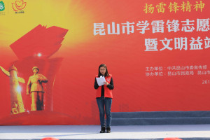 昆山图书馆也积极投入到此次活动中来,活动当天,昆图朗诵团成员为大家带来了合诵作品《雷锋,一个伟大的名字》,抑扬顿挫的朗诵,似乎把我们带回了雷锋的世界,另外我馆的陆舟在活动中作了“书海导航”志愿者服务工作的分享,同时图书馆接受首批文化志愿服务站的授牌。