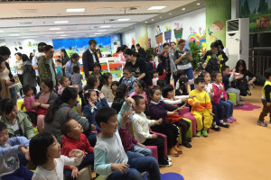 当晚六点左右,家长就带着小朋友们陆续的进入少儿室一楼进行签到和阅读。稍后全体集合前往二楼绘本馆并由李老师带队向大家详细介绍绘本观的情况:小书虫绘本馆是昆山首个专门为0-6岁儿童提供独立公共文化服务的场馆,总服务面积300平方米,入藏各类绘本图书1万余册,有绘本文学区、英文原版区、新书架区、小舞台区,为鹿城低幼儿童提供各类绘本的阅览、借阅、检索、咨询以及开展丰富多彩的绘本阅读推广活动。