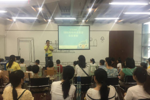 这次活动我们邀请到毛毛老师和其他两位老师。首先由三位老师带着大家跟着英文短片里的小朋友一起做热身操,小朋友和家长们都很积极地参与了进来。接着一名热情且表情丰富的男老师通过轻快、活泼、反复熟读及一问一答的方式让小朋友们记住表现情绪的英文单词,如“happy”、“sad”、“shy”、“surprise”等。活动最后,老师们还和家长们一起探讨在教育孩子过程中遇到的种种问题,分享育儿经验。