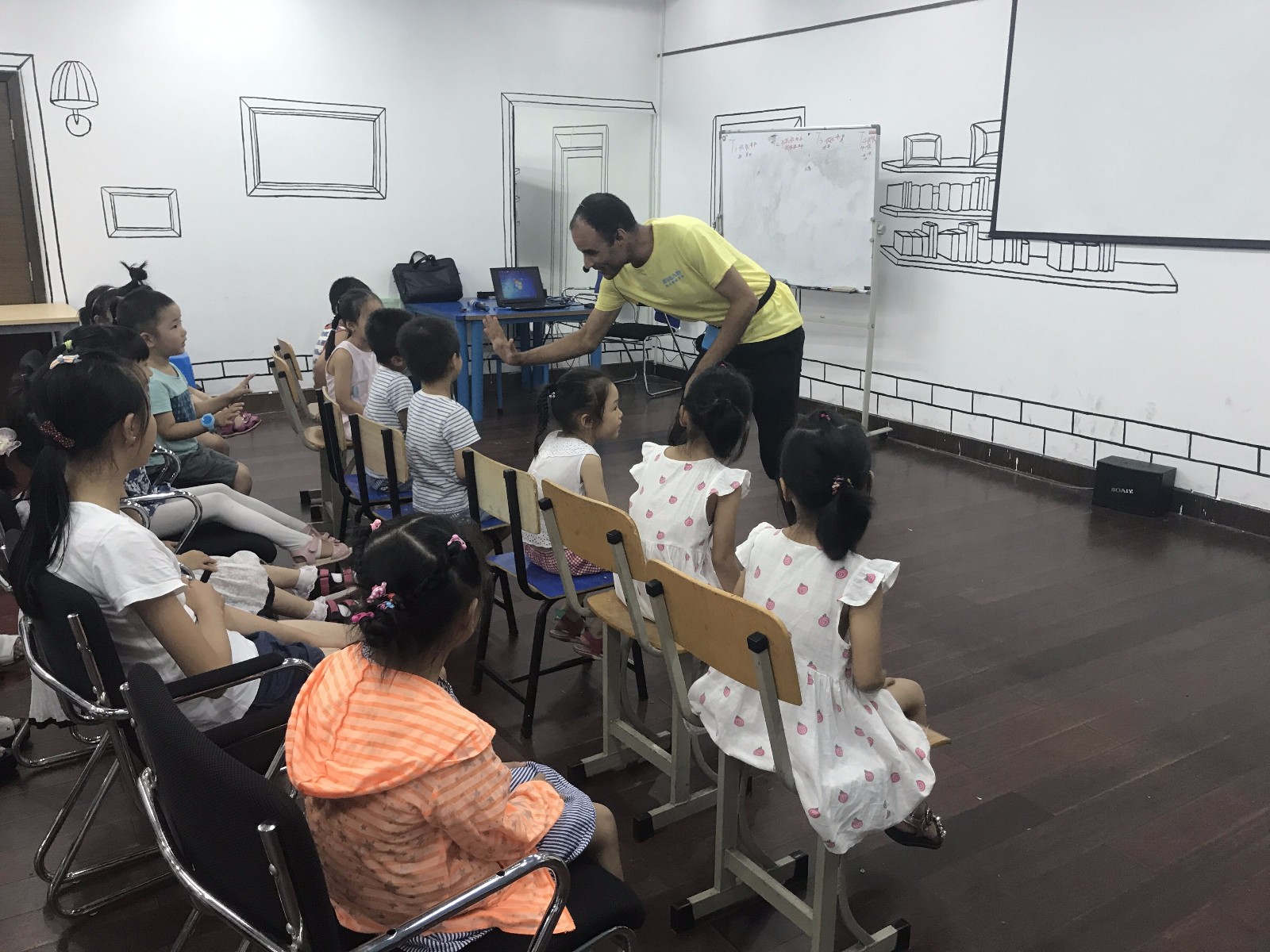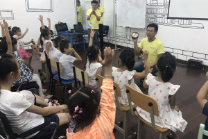 活动开场,萌萌的外教和助教老师就带着小朋友们来了一段热身舞,现场气氛瞬间活跃了起来,紧接着老师就拿出了今天的主要道具:形象超级逼真的食物!