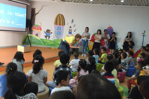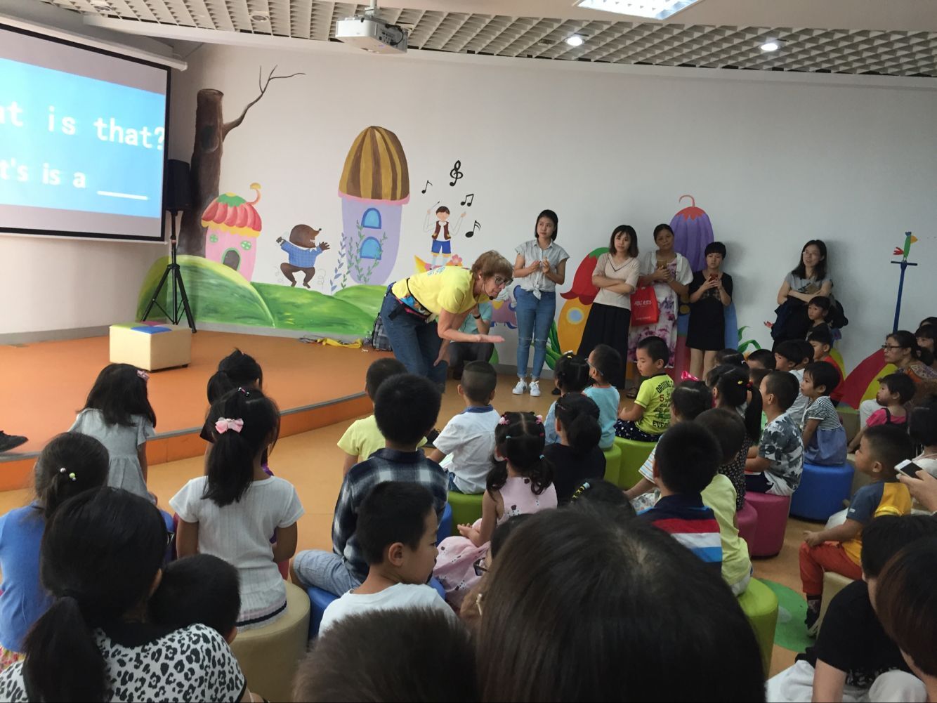 上午,我们请来了外教老师上课。首先老师教小朋友们运用两句简单的句型“What is that?”、“That is a… ”,接着就拿出动物道具,教小朋友们英文名称:马-horse、狮子-lion、猪-pig、兔子-rabbit、牛-cow、鳄鱼- crocodile……现场气氛很活跃,小朋友们不知不觉就对英语产生了浓厚的兴趣。