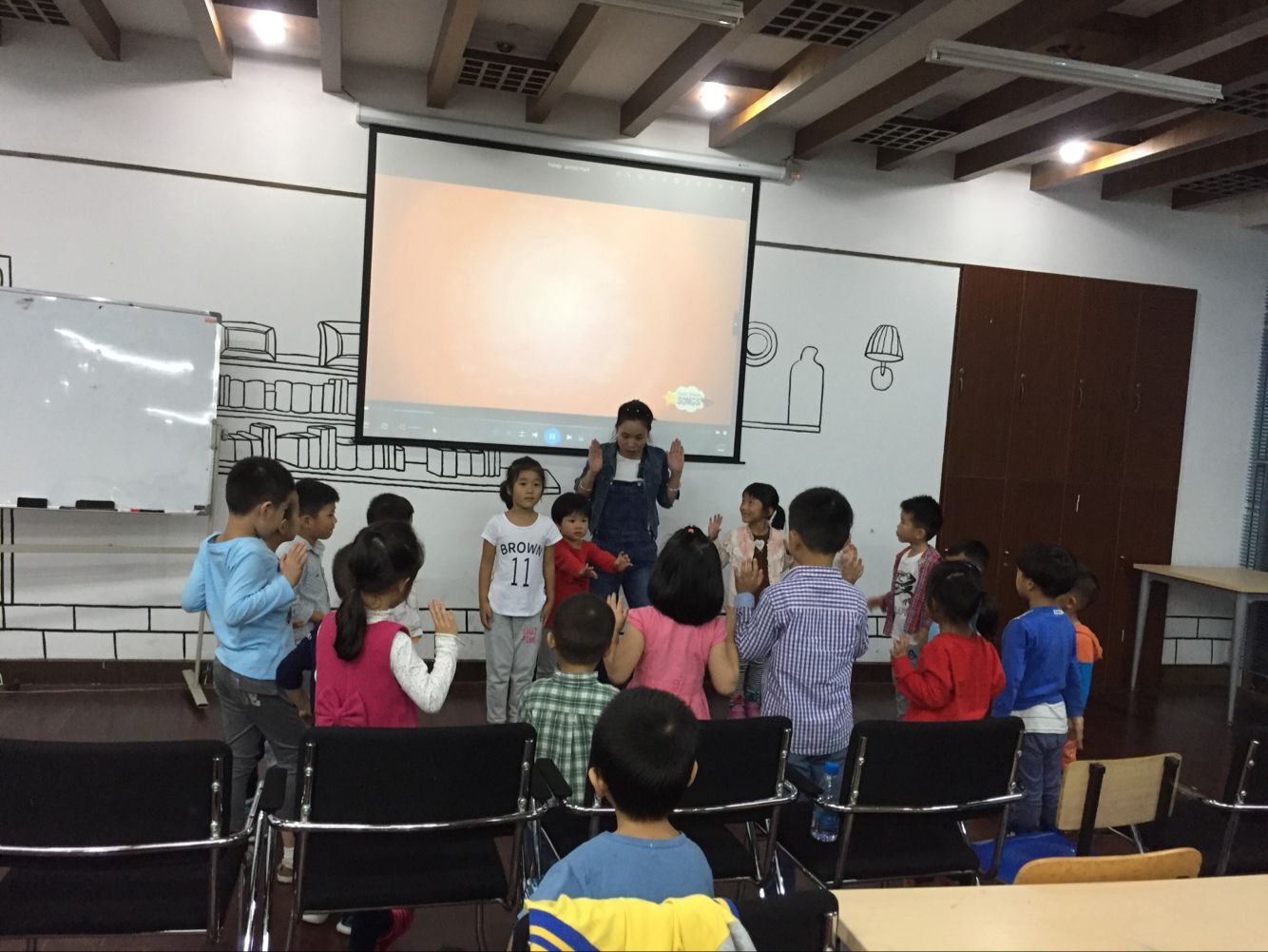 这次活动我馆请来了绘本树英语的Lisa老师上课。首先老师教小朋友们如何用英语相互打招呼,活跃了一下气氛。接着就进入今天的主题,老师用英文简单的阐述了故事内容,用图片演示相关情节,还配以生动形象的动作表情。说到动情之处,小朋友们会站起来跟着老师异口同声地说:“No”, “be quiet” , “come back here”……小朋友们在欢声笑语中不知不觉就学到了很多知识。活动最后,大家一起玩猜拳游戏,谁输了,就要讲出相应的英语单词或句子。