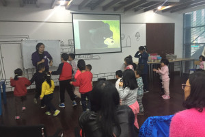 这次活动由小书虫俱乐部请来了长颈鹿美语的Cherry老师来上课,活动内容分为两个环节,故事环节和手工环节。