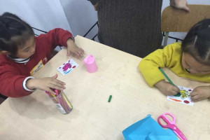 接下来是手工环节,老师发给每位小朋友一份材料,制作了一个花栗鼠相框并涂上颜色,由于幼儿园的小朋友都比较小,需要爸爸妈妈的帮助配合才能完成。通过这样的活动锻炼了小朋友们的动手动脑能力,培养了小朋友们与家长之间的亲子感情。