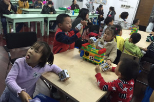 这次活动由小书虫俱乐部请来了贝乐的豆豆老师来上课。活动分组进行,每组有个小组长,然后在豆豆老师的带领下,我们的小朋友们开动脑筋,动手设计,拼插出心目中的双层巴士。最后各组小朋友给大家介绍了他们的作品,小朋友们积极参与并乐在其中,最终还能体会到团队合作的力量,更让小朋友们高兴的是老师还送给他们每人一个小乐高。