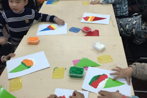 这次活动由小书虫俱乐部请来了米乐英语的老师来上课,活动内容分为两个环节,故事环节和手工环节。首先由米乐的老师和小朋友们打招呼后,活动就正式开始了。老师用PPT讲解了小象黛西进冰激凌店里看到各种各样的冰激凌非常的开心,然后就想自己动手制作那些圆形三角形及不同颜色的漂亮美味的冰激凌。而我们的小朋友在我们老师的带领下也制作了看上去美味可口的冰激凌。