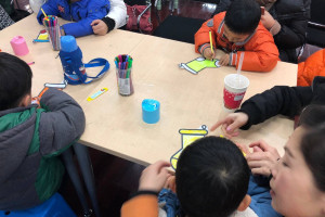 这次活动小书虫俱乐部请来了矶维英语的老师来上课,活动内容分为两个环节,故事环节和手工环节。首先由矶维的老师和小朋友们打招呼后,活动就正式开始了。老师一边播放PPT,一边引导小朋友们跟着念“star”、“merry christmas”、“snowman”等与圣诞节有关的英文单词,接着老师邀请家长和小朋友们一起玩了一个听数字找伙伴的游戏。活动最后,老师给每位小朋友都发了一张画纸,让大家画出自己喜欢的圣诞袜。