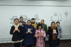 这两周正是雪后寒的日子,可是老师和孩子都早早来到场地,老师感动了孩子,孩子感动了老师。老师充分准备,认真授课,孩子张大嘴巴、竖起耳朵,快乐学音标、开心说单词。老师不仅教他们音标,还和他们一起分享英语学习中的趣事,英文歌曲《Be what you wanna be 》,谈理想……最后一天每个小朋友上台自我绍,谈前面9次课的心得,自我展示,尽量讲英语,每个小朋友都是评委。自我展示环节中,小朋友表演乐器、昆曲、猜谜……为期两周的活动,Emily作为志愿者不收报酬,还为小朋友准备了奖品,最后每个小朋友都得到一本本子、一个瓶牛奶、一块蛋糕,希望通过音标的学习,英语变成“A piece of cake!”。两周的学习,不同学校不同年级的孩子变成了朋友。乐中学,学中乐,丰富了他们的寒假生活。为小书虫英语冬令营打call。