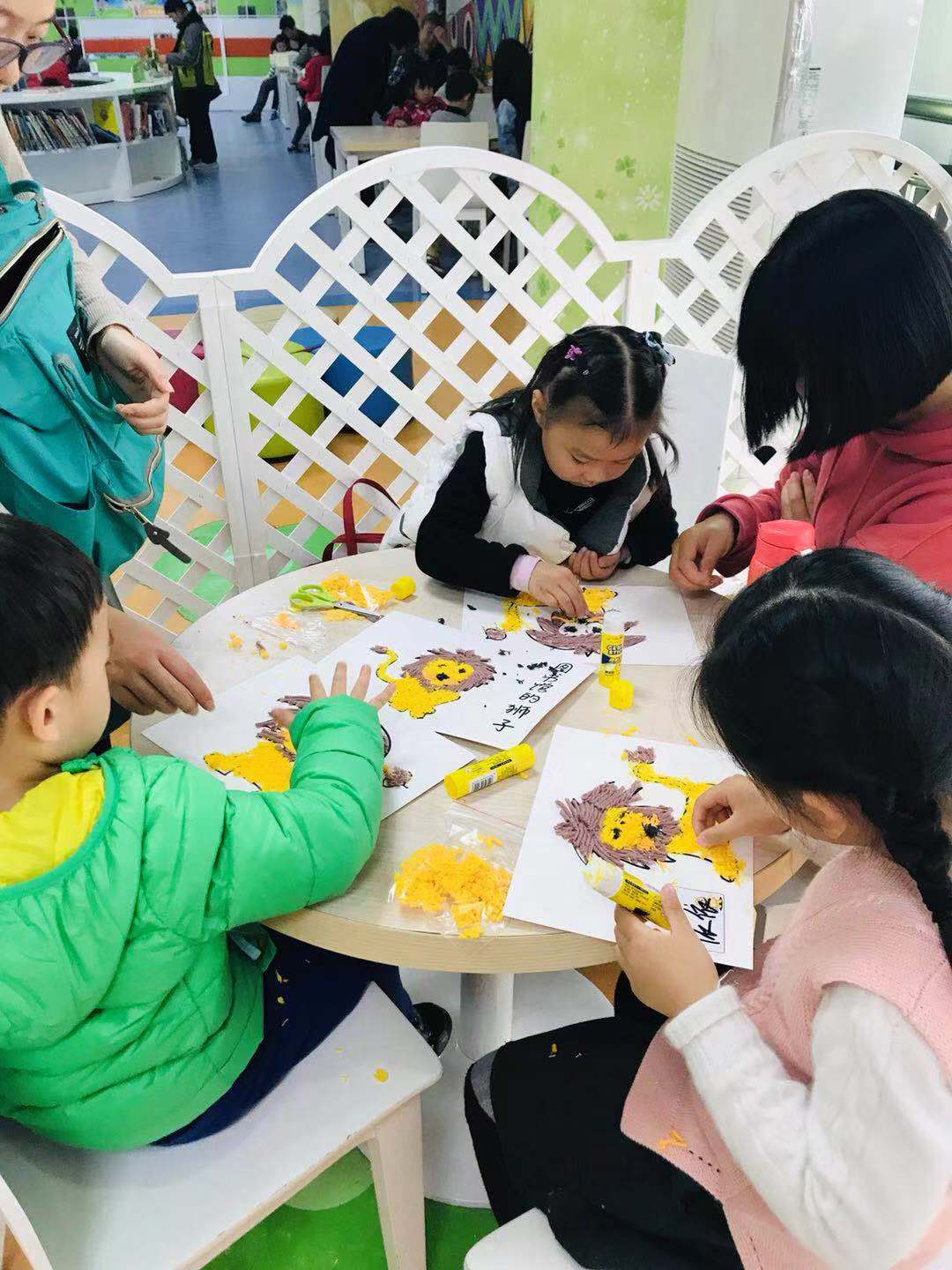 这本绘本用水粉画般的图画和生动有趣的故事,在没有说教的情况下,让孩子们学会遵守规则非常重要,但同时让我们的孩子知道,在什么情况下规定是可以打破的也同样重要!这就是绘本的魅力。绘本讲读完毕后,老师还带着大家一起用毛线制作属于自己的小狮子。